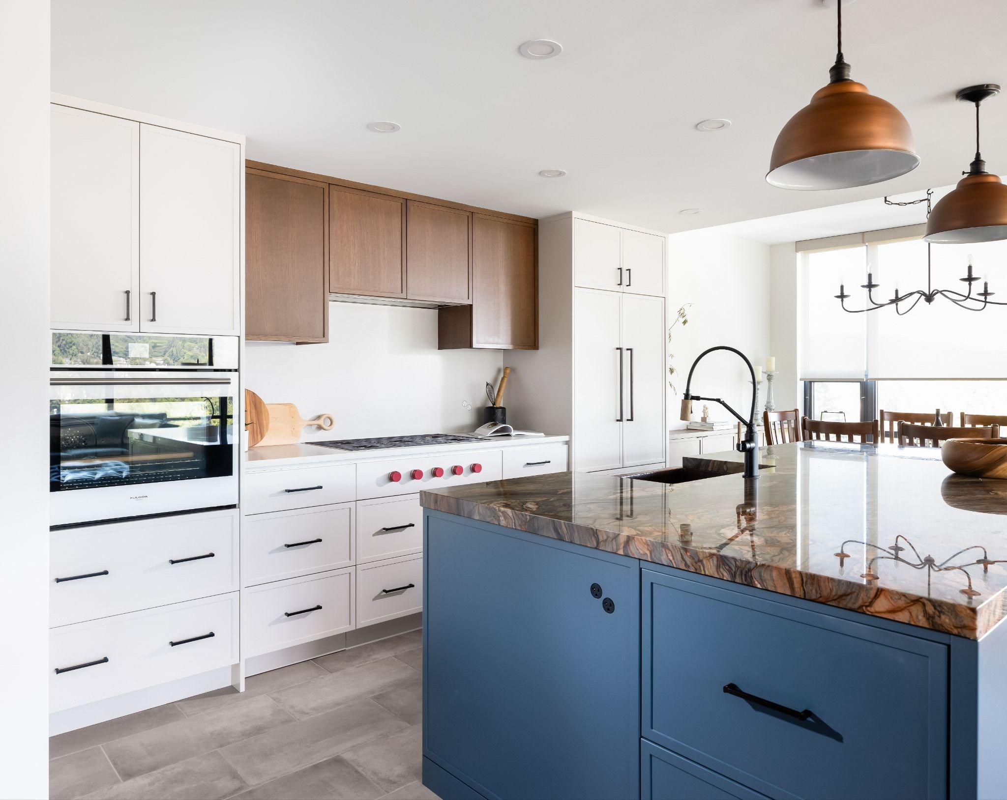Painted cabinets aren’t the only route to a timeless look; wood, especially when finished in a natural or mid‑tone stain, adds warmth and texture that works beautifully with the West Coast landscape outside your windows.
