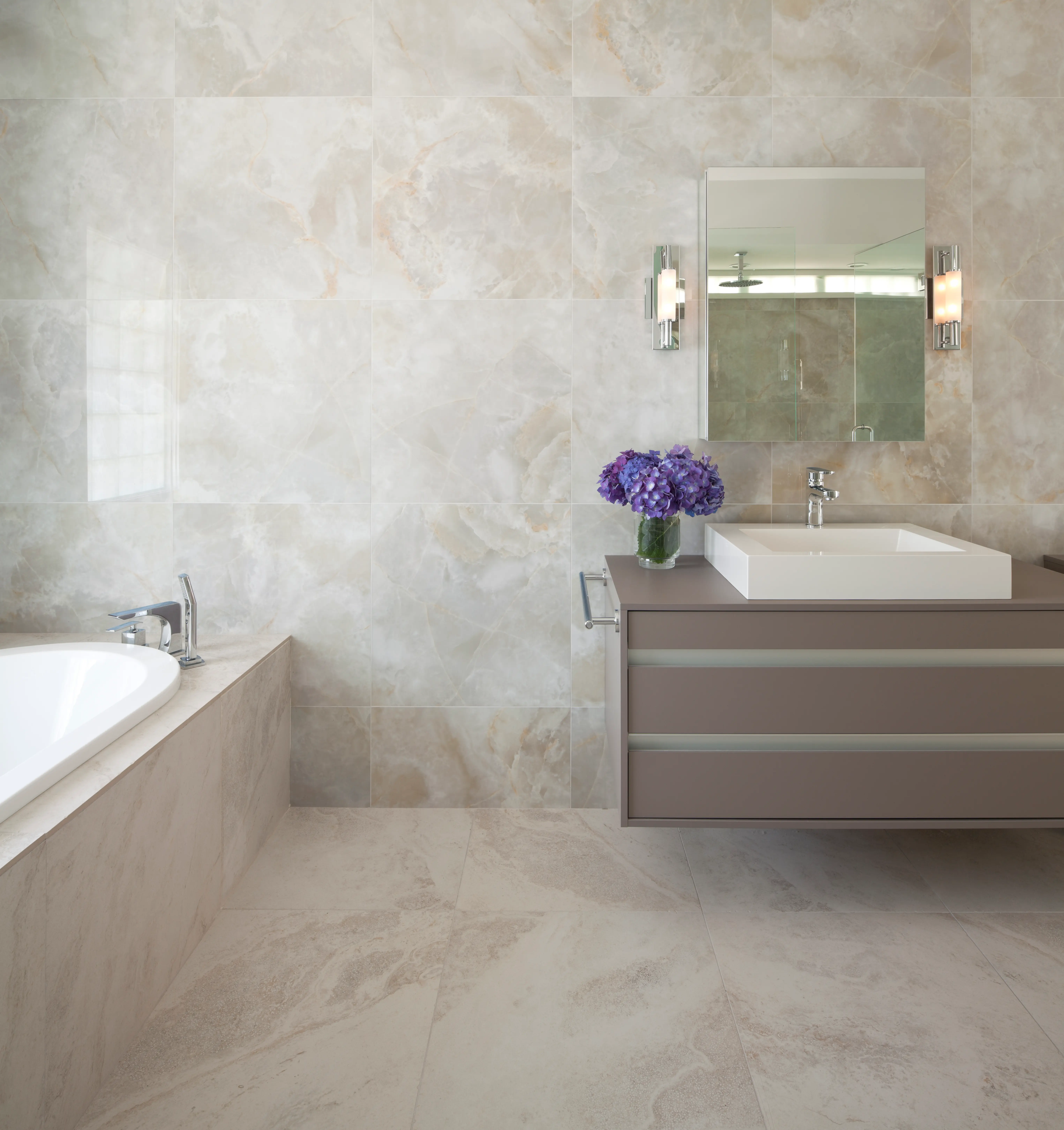 - Durable 'travertine look' ceramic tiles