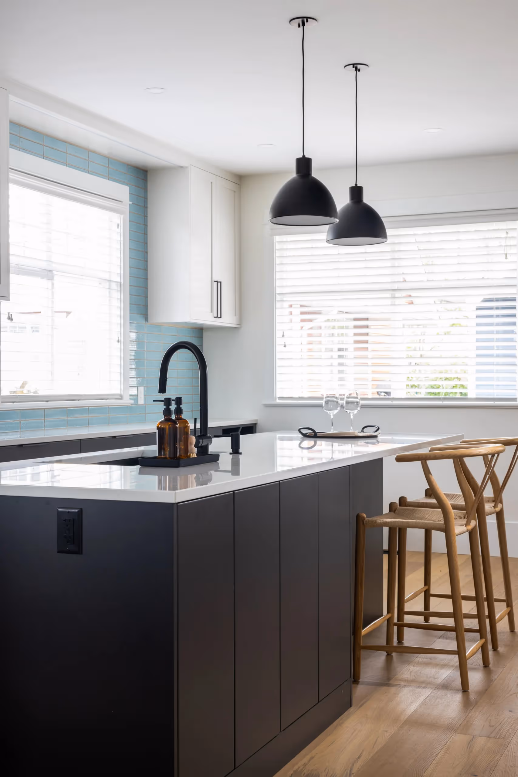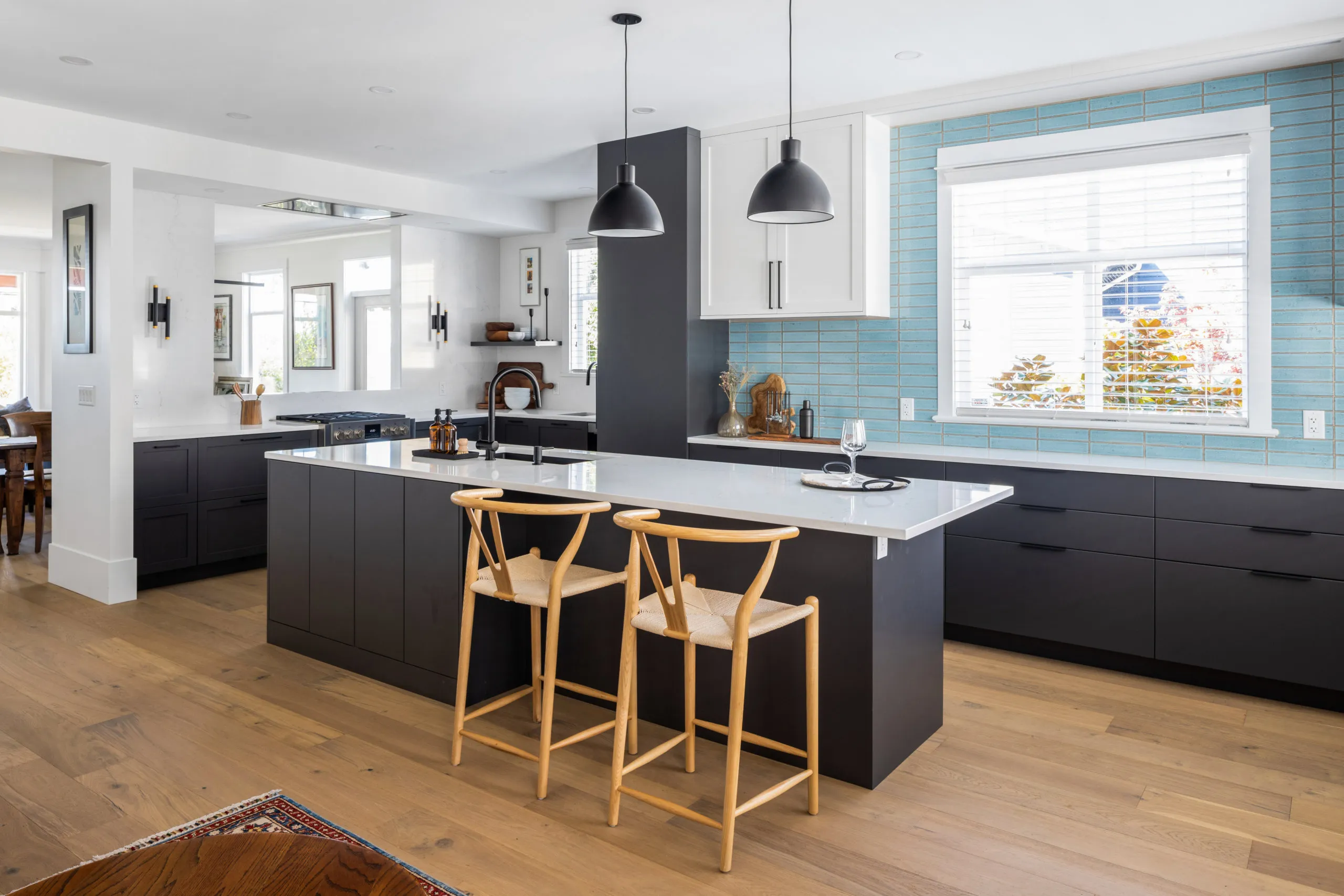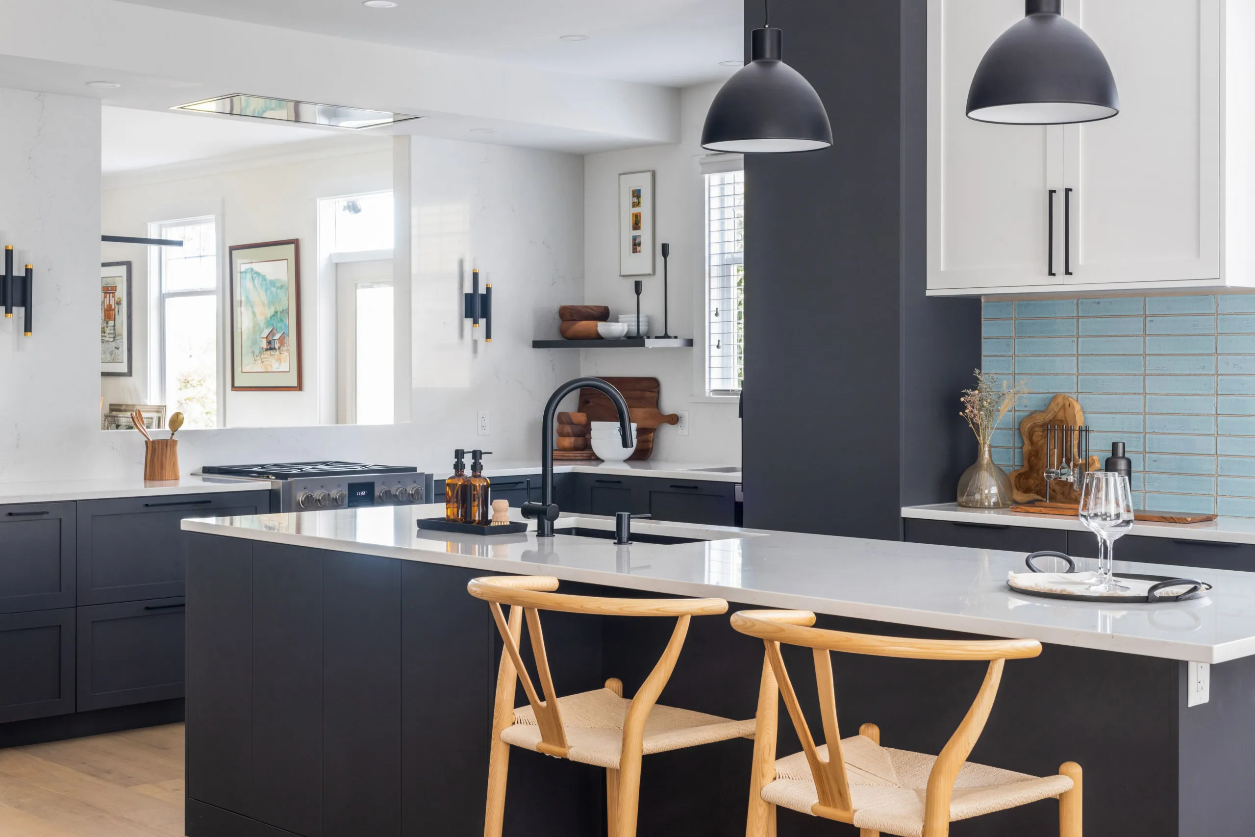 Designs by KS helped redesign this townhome to bring more natural light, connectivity, and better views of the ocean. This once dysfunctional kitchen, awkward family room, and its outdated bathrooms are reimagined, reconfigured, and improved.