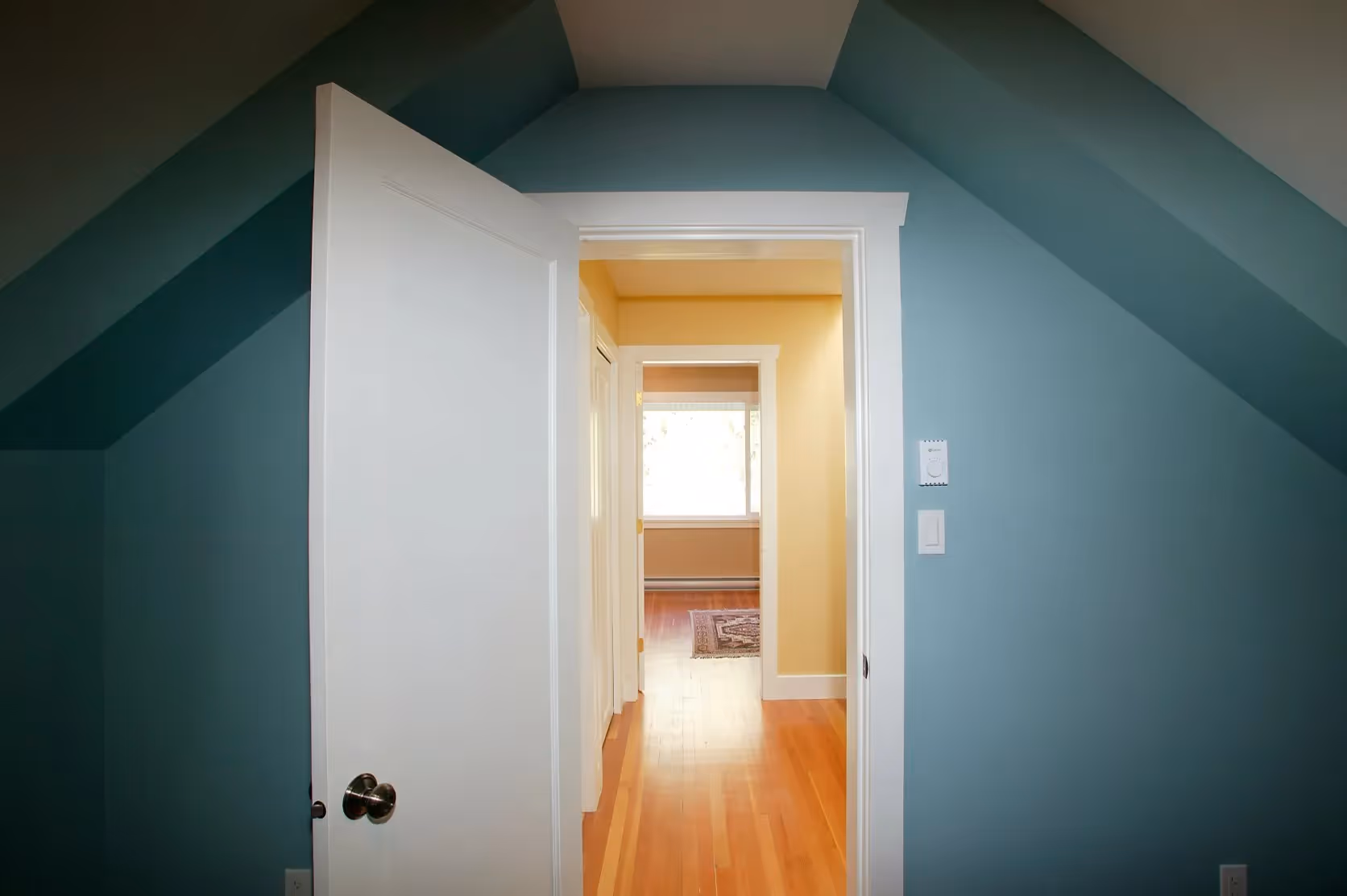 The unused attic was reclaimed and converted into a modernized, newly insulated, comfortable and livable master suite; a new, expanded bathroom was created with better access and vastly improved headroom over the tiny pre-existing shower stall.