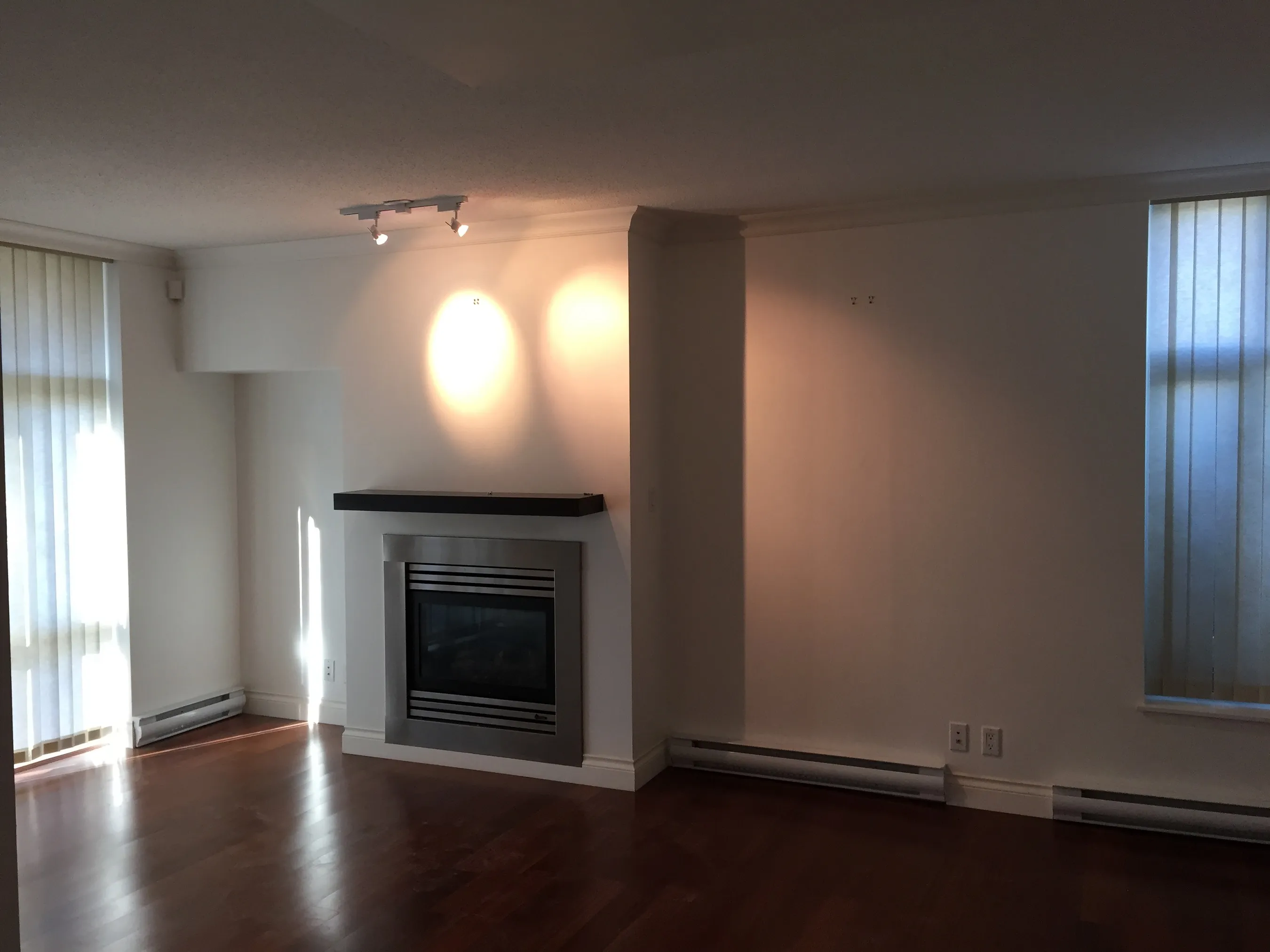 - Sleek metallic tiled floor-to-ceiling fireplace