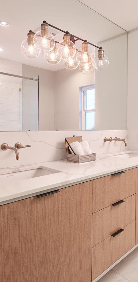 This renovation of a 50’s-era, post war bungalow offers sophistication and comfort with it’s newly minted style. From the street, the house looks almost as it always has. It blends in perfectly with the other quaint bungalows lining the street. The interior is a different story. The house was completely renovated to make way for a new layout on the main and lower levels. This 2,059 sf single-family home was stripped to the studs and all electrical, mechanical and heating were upgraded to the latest energy saving features.
